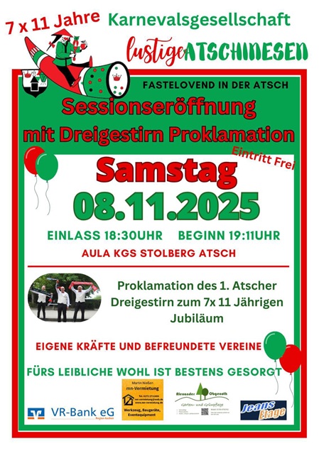 Sessionseröffnungmit der Proklamation des Atscher-Dreigestirnsin der Aula KGS Atsch